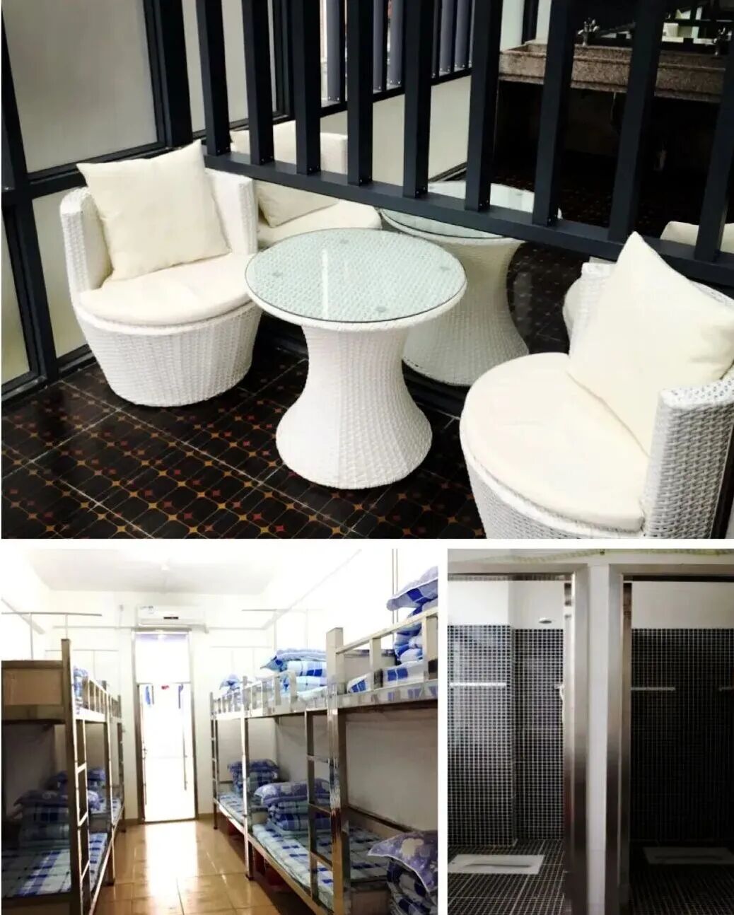 舍为8-10人间,衣柜、洗澡间、空调等一应俱全,每间宿舍有个小阳台,布置有1个茶几和2张单人沙发。